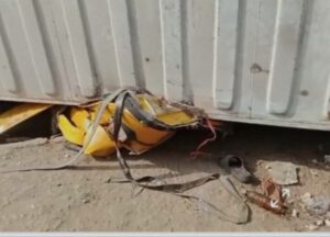 An eyewitness, said the truck lost control while negotiating a bend around the roundabout, causing the container to fall and crush the tricycle, commonly referred to as ‘Keke NAPEP’