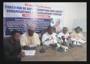 The Coalition of Anti-Corruption Civil Society Organisations for Development (COCSOD), gave the charge on Friday at a press briefing in Abuja.