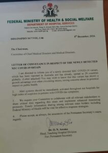 Head of Teaching Hospital Division for Permanent Secretary, Dr. O. N. Anuma, had In a circular dated 5th December 2024, with reference number DHS/INSPDIV/017/VOL.1/46 alerted that the new variant has shown a growth advantage over other circulating strains, raising concerns about its potential impact on public health.