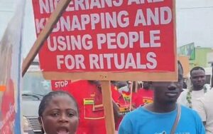 Amidst downright indignation, Ghanaians are protesting against alleged ritual killings, mass prostitution allegedly perpetrated by Nigerians in their country