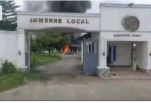 Same Violence was recorded in parts of the Eleme Local Government Area (LGA) Secretariat was set ablaze by yet to be identified youths. the devastating fire ravaged the Eleme Local Government secretariat, sending shockwaves through the community.
