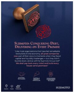 “Like all great companies that have sparked revolutions in their industries, Sujimoto’s story is one of resilience through adversity. We’ve faced capital and liquidity challenges, but we didn’t buckle. We kept moving forward, kept breaking new ground, and kept our promises. We shall pay back every nickel and build every house we’ve promised,” Dr Sijibomi Ogundele affirmed.